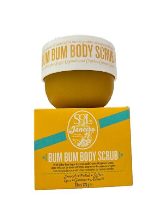 Ce gommage pour le corps ultra fin et légèrement scintillant est digne d’un soin au spa : sa formule exfolie en douceur, nourrit et révèle la peau douce d’été que l’on aime avoir toute l’année. Ce cocktail brésilien lissant contient des graines de cupuaçu concassées, des cristaux de sucre et du guarana, riche en caféine. Il exhale les notes du parfum emblématique Cheirosa ’62, que l’on retrouve dans la crème Brazilian Bum Bum. Sa texture ultra fine inspiré des plages de sable doré somptueuses de Rio ne contient aucune micro-bille. Formulé à base de plantes, cet exfoliant exploite la puissance de la nature afin de transformer la peau. Sans parabènes et sans gluten.